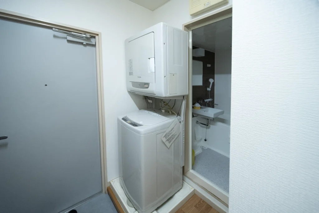 お部屋からインターネット、メールを扱えるLANの差し込み口、キッチン、バス、トイレはもちろん全自動洗濯機、衣類乾燥機、冷蔵庫に電子レンジ、手鍋に至るまで生活に必要な設備がそろった至れり尽くせりのスペースをご用意いたしました。